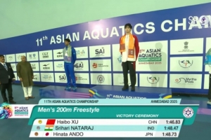 體育資訊9月28日訊 2025年亞洲游泳錦標賽男子200米自由泳決賽,徐海博1分46秒83奪得金牌。