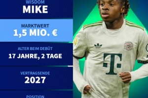德轉也公布了麥克初始身價,為150萬歐,他與拜仁目前的合同將到2027年到期。