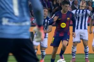 比賽中,佩德里絲滑帶球過掉了皇家社會球員巴雷內切亞,后者無奈攤手。