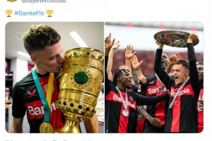 當(dāng)?shù)貢r(shí)間今天上午9點(diǎn),勒沃庫森更新社媒動(dòng)態(tài),曬出維爾茨與德國杯獎(jiǎng)杯、德甲冠軍獎(jiǎng)盤的合照,配文:“謝謝,弗洛里安。”