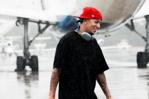 而在登機的時候,天下正下著不算小的雨,但黃蜂眾將沒有一個選擇撐傘,都是冒著雨不慌不忙的上飛機。