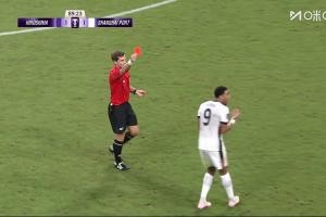 體育資訊09月30日訊 亞冠精英聯(lián)賽東亞區(qū)第2輪,廣島三箭vs上海海港第90分鐘,海港前鋒古斯塔沃拼搶中犯規(guī),主裁判果斷直紅將其罰下,VAR核實(shí)后維持了原判。