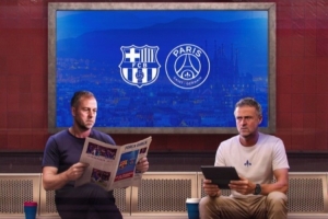 體育資訊10月1日訊 巴薩發布歐冠對陣巴黎海報,兩隊主教練出鏡亮相。