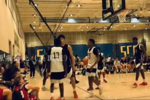當(dāng)時(shí)是Veritas Academy的進(jìn)攻回合,張博源和對手(白隊(duì)13號(hào)球員)對位,兩人胳膊糾纏在一起,隨后發(fā)生口角,還升級(jí)為肢體沖突,張博源被沖上來的隊(duì)友護(hù)住,他的隊(duì)友們將對手推開,更多人加入沖突,導(dǎo)致比賽停止,教練也參與了進(jìn)來。
