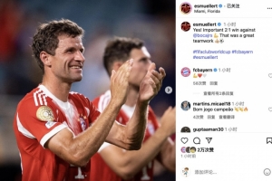 賽后,穆勒更新社媒肯定整個團隊的表現,寫道:太棒了!對陣博卡青年2:1的勝利至關重要 ?? 這是完美的團隊協作 ??????
