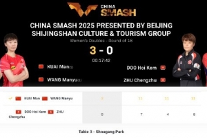 體育資訊10月1日訊 2025年WTT中國大滿貫女雙1/8決賽,王曼昱/蒯曼3-0杜凱琹/朱成竹,晉級八強。