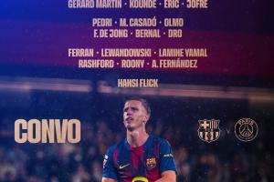 體育資訊10月01日訊 巴薩公布歐冠對陣巴黎的大名單,萊萬、亞馬爾、佩德里領銜,巴爾德復出,一線隊門將僅什琴斯尼。
