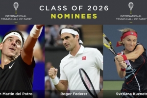 體育資訊10月1日訊 官方消息,費德勒、德爾波特羅和庫茲涅佐娃入圍2026年網球名人堂候選名單。