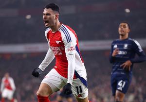 體育資訊10月2日訊 在本輪歐冠阿森納對陣奧林匹亞科斯的比賽,馬丁內利率先進球。