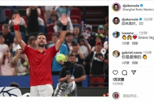 德約科維奇社媒曬出謝場(chǎng)照片,表達(dá)再次來(lái)到中國(guó)參賽的喜悅之情,并用中文寫(xiě)道:“回來(lái)真好。”