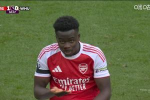體育資訊10月04日訊 英超第7輪,阿森納vs西漢姆聯(lián)。比賽第60分鐘,薩卡被對(duì)手打到臉部,鼻子出了點(diǎn)血。