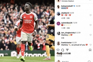 這是薩卡英超第200場里程碑之戰,同時也是薩卡英超參與進球數第100個。賽后,薩卡更新社媒曬照紀念自己英超第200次出場,并配文:200場??