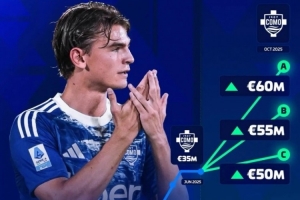 尼科-帕斯23年2月在皇馬時身價僅為200萬歐,本賽季尼科-帕斯為科莫出戰6次,數據為3球3助,現身價3500萬歐。
