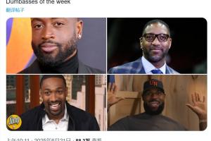 體育資訊06月22日訊 推特上著名的科比球迷自媒體Olympic Bean今日曬出韋德、麥迪、阿里納斯、詹姆斯四人照片,怒噴他們四人是“本周最笨笨蛋”。