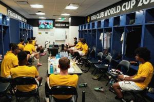 由于天氣炎熱,多特的替補球員們在更衣室觀看他們的比賽????