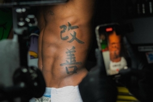 體育資訊10月7日訊 紋身師Kavon Udoh曬出了他為內史密斯新增紋身的動態,內史密斯紋在腰間的是兩個大大的漢字——改善。