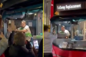 視頻顯示球迷們圍住公交,用口號嘲諷艾薩克,多人舉起手機對他拍攝。部分球迷還敲擊車身,并試圖打開駕駛員側(cè)車窗。身穿利物浦球衣的艾薩克坐在駕駛座上神情沮喪地注視著這一切。