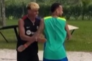 兩人一起踢“足排球”,內(nèi)馬爾腳弓墊球做給亞馬爾,后者心領(lǐng)神會頭球得分,隨后兩人開心擊掌擁抱。