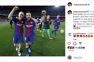 體育資訊10月8日訊 阿爾巴將在本賽季結束后退役,老隊友伊涅斯塔社媒發文祝福。