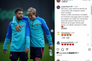 體育資訊10月8日訊 西班牙邊衛阿爾巴將在本賽季結束后退役,前巴薩隊友羅貝托社媒發文祝福。