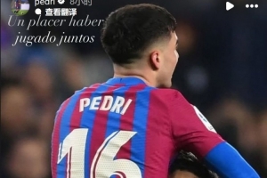 佩德里社媒曬出與阿爾巴慶祝的合照,配文:“很榮幸曾與你并肩作戰,場上的偉大球員,場下的天才人物?!?/p>