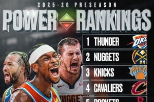 體育資訊10月8日訊 美媒Basketball Forever在賽季正式開打之前評選出的季前球隊實力榜TOP10。其中雷霆排在第一,掘金第二,尼克斯排在第三。