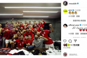 薩拉赫社媒曬出全隊在更衣室的合照,慶祝球隊晉級2026年世界杯。